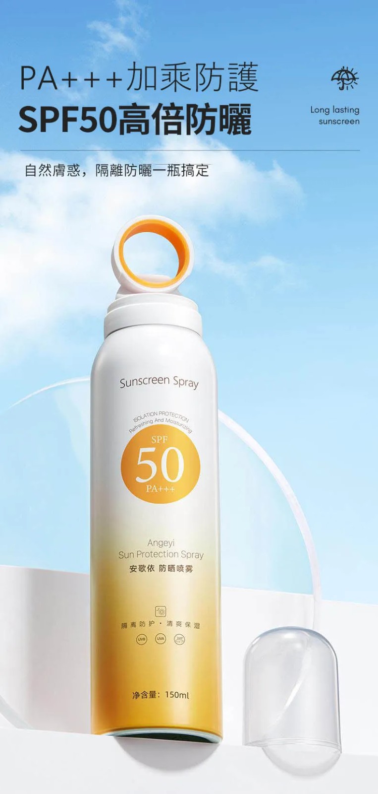 20分鐘前安歌依光圈防曬噴霧,細密噴頭設計 噴頭360°可旋轉自然膚惑,隔離防曬一瓶搞定 - 特大優惠「安歌依光圈防曬噴霧」4入96%用戶的選擇!NT$1198【限時免運】